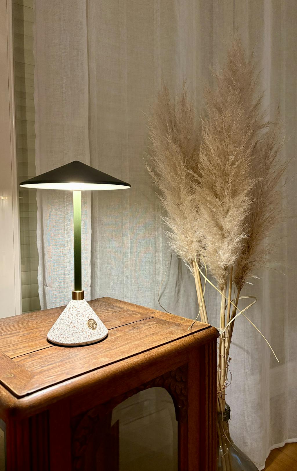Son variateur tactile en laiton, situé sur la base, permet d'ajuster facilement l'intensité lumineuse et de créer l'ambiance parfaite, que ce soit en lampe de chevet, lampe de table ou éclairage d'appoint.